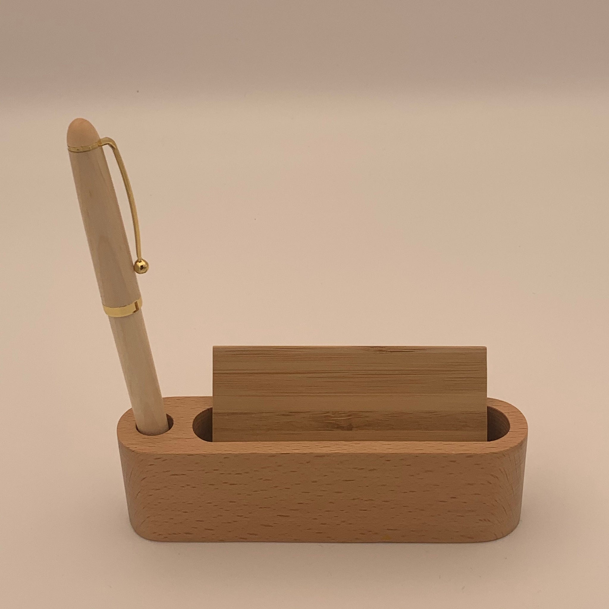 Beech Wood Business Card and Pen Holder