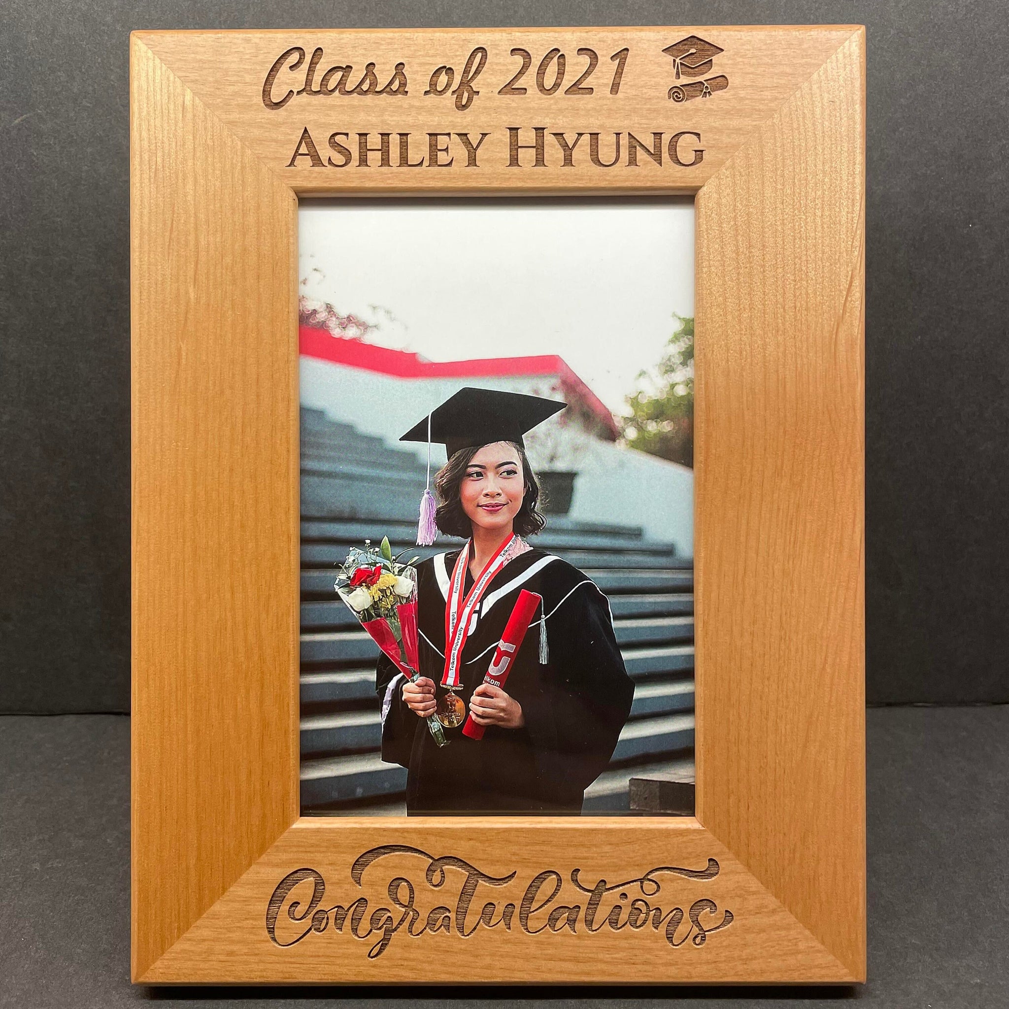 Customizable Red Alder Picture Frame | Personalized Wooden Frame | Unique Keepsake Executive Gift | Laser-Engraved Graduation Photo Frame