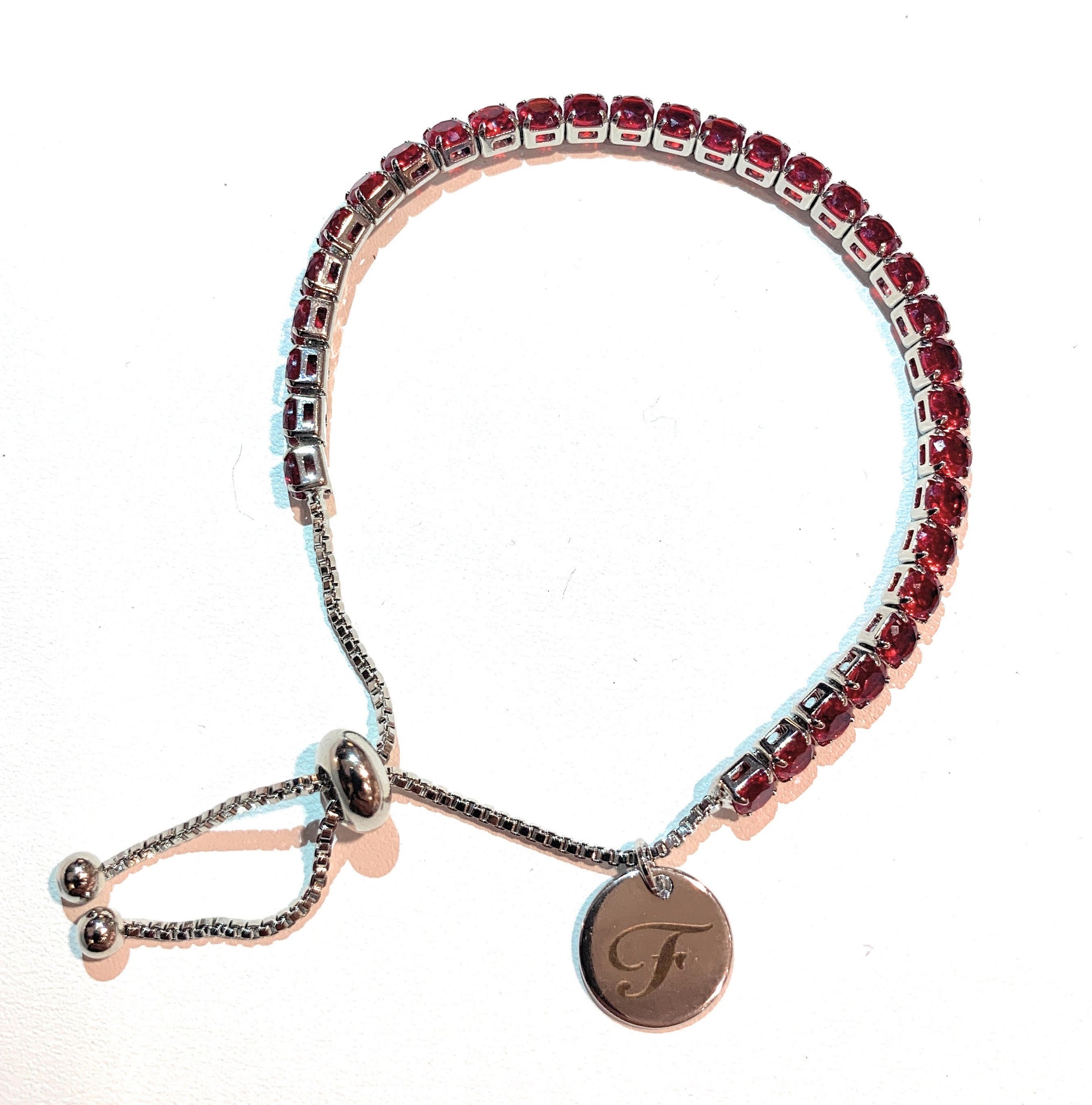 Initial Engraved Rhinestone Crystal Chain Bracelet | Sparkly Silver Slider Bracelet Adjustable Elegant Dainty Bracelet Personalized Gift Tag