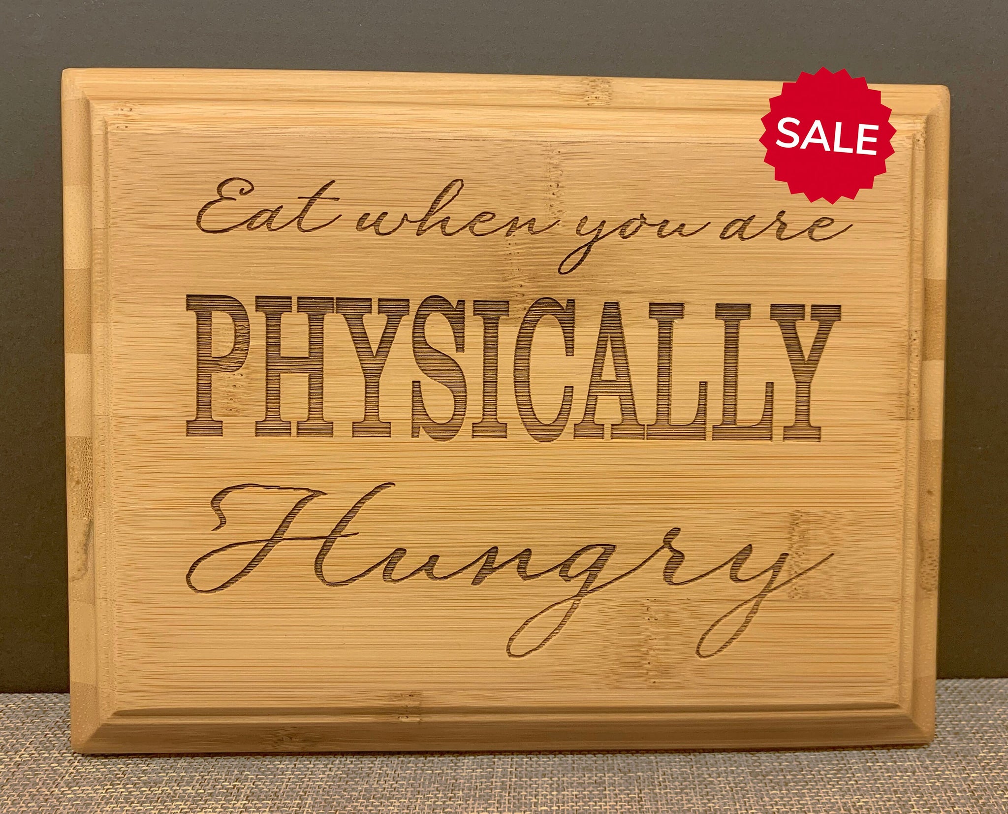 Inspirational Quote Bamboo Sign | Eat When You Are Physically Hungry Engraved on Bamboo Plaque | 7" x 9" Eco-Friendly Home Decor Bamboo Wood