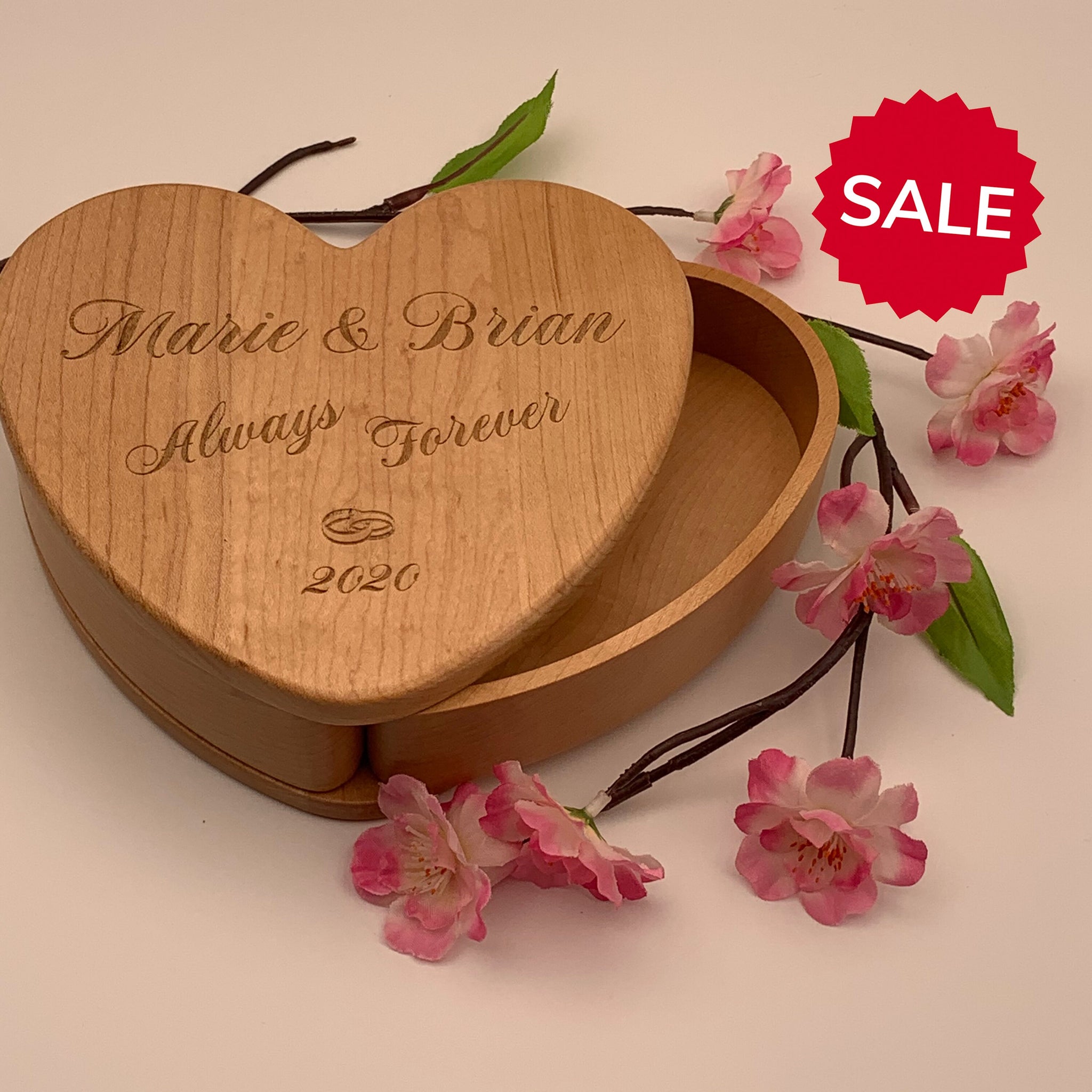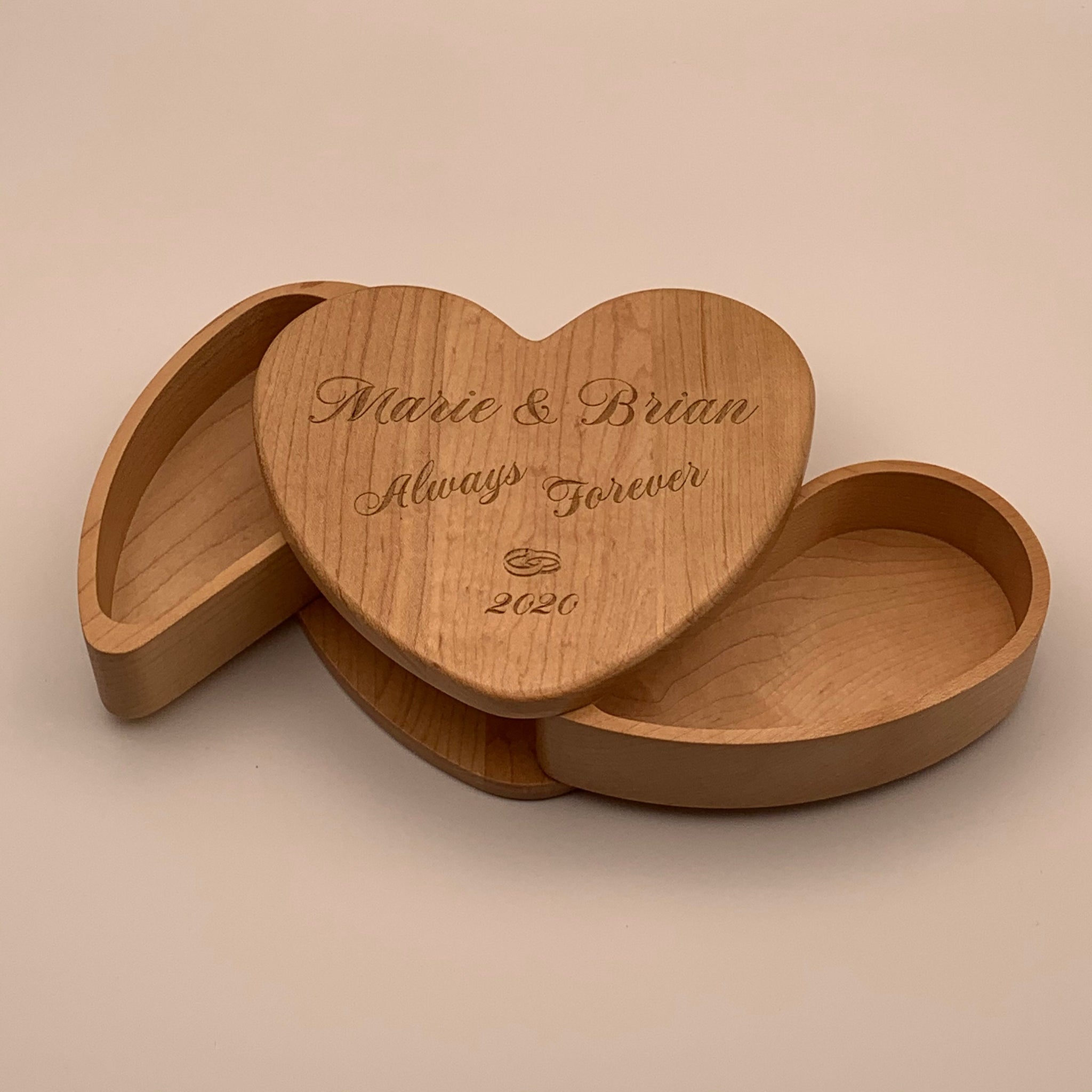 Personalized Jewelry Box | Custom Laser Engraved Maple Wood Heart-Shape Jewelry Keepsake Box | Customizable Wooden Wedding Anniversary Gift