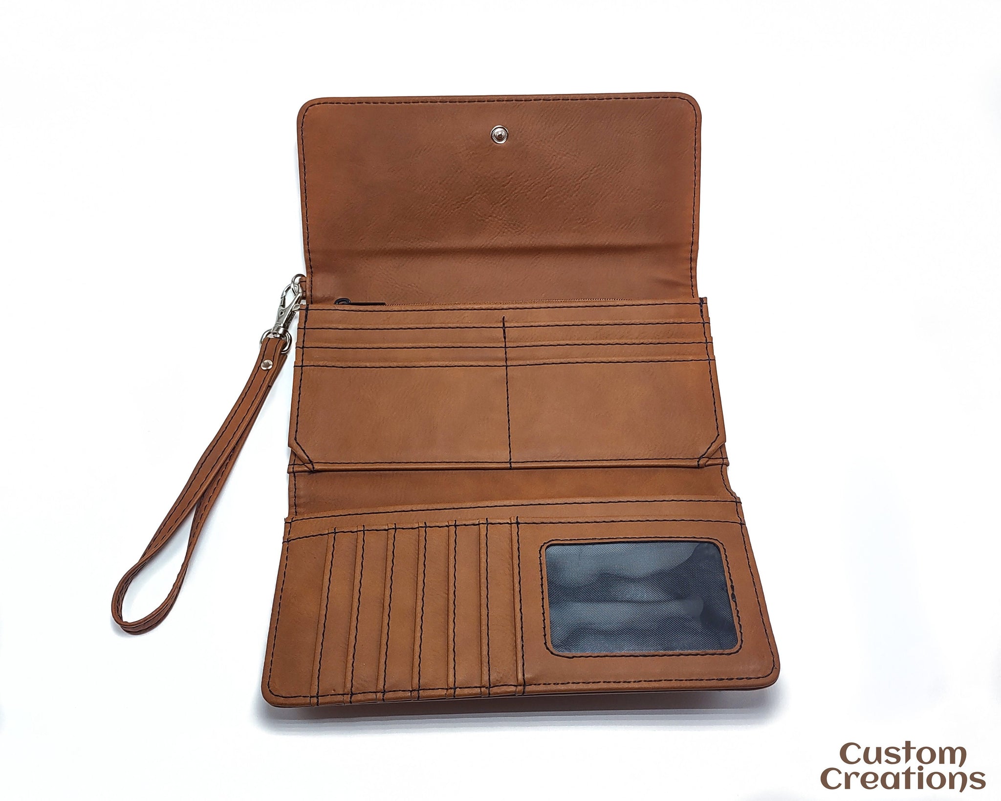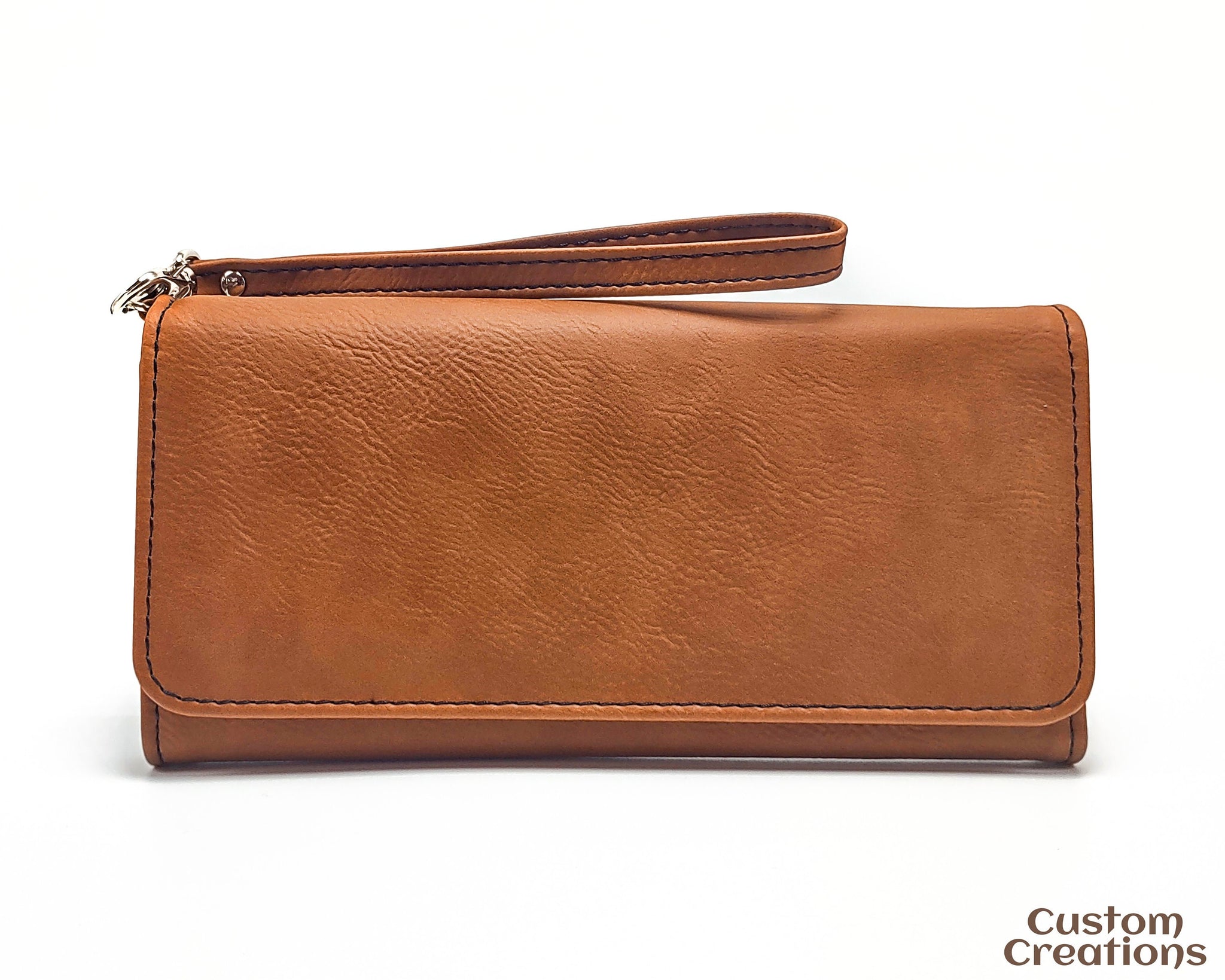 Personalized Leather Women's Wallet with Wrist Strap | Laser Engraved Rawhide Card Case Wallet | Customizable Vegan Leather Gift for Mother
