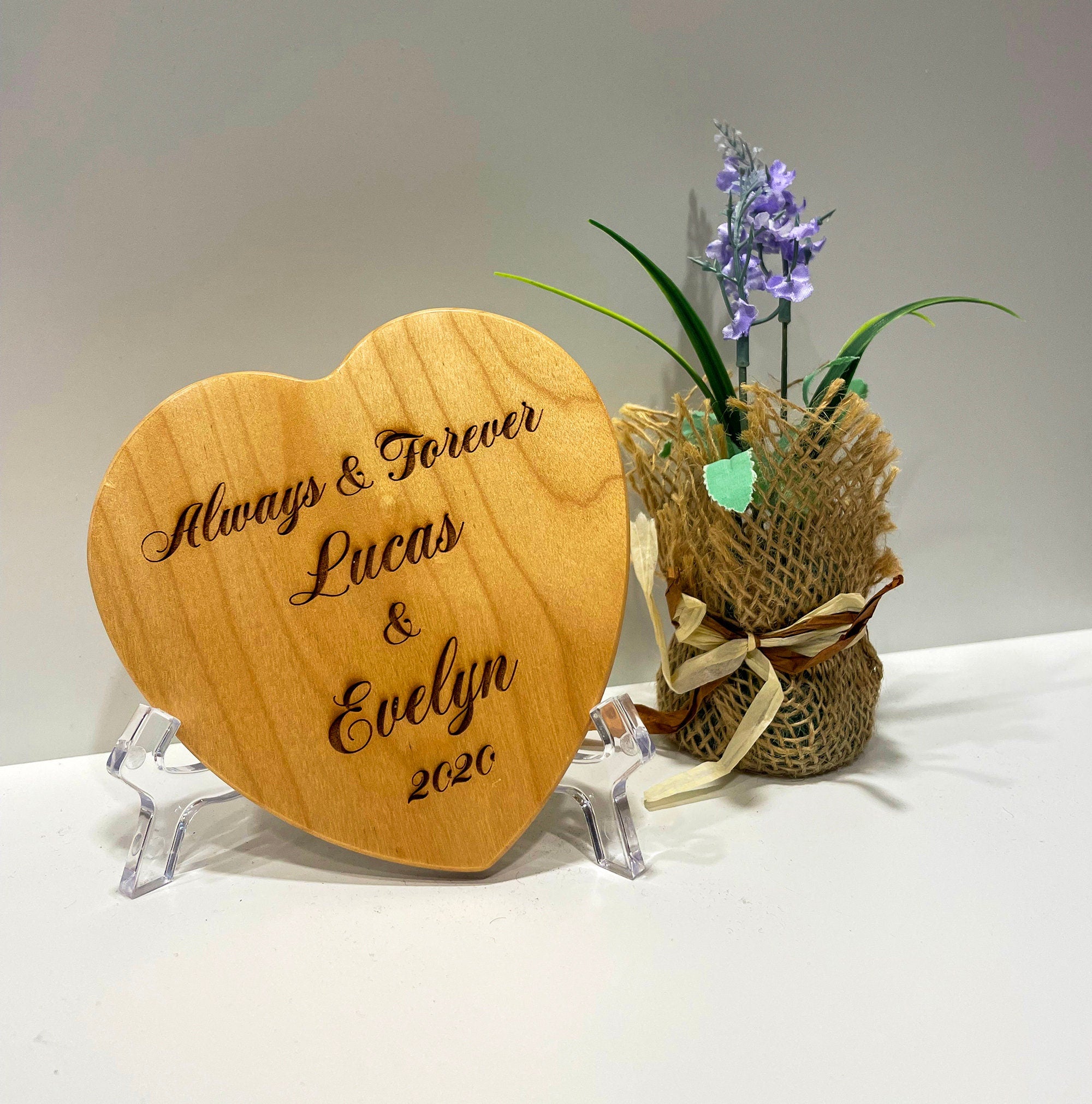 Personalized Wedding Anniversary Gift | Laser Engraved Heart Shaped 5" x 5" Maple Wooden Anniversary Gift | Unique Gift for Your Loved One