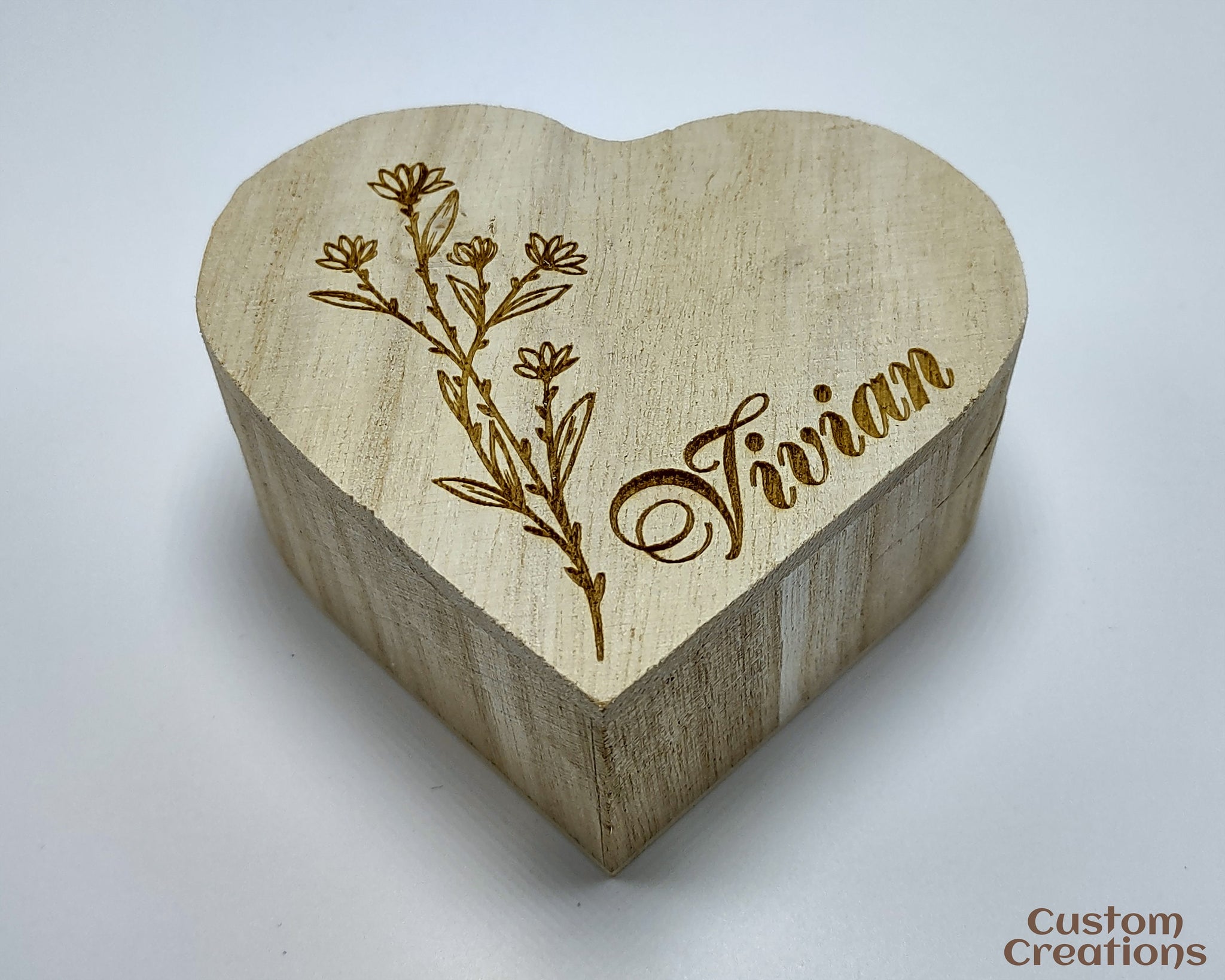 Personalized Wooden Jewelry Box | Customizable Laser Engraved Heart-shaped Wood Jewelry Box | Custom Engraved Box Wedding Anniversary Gift