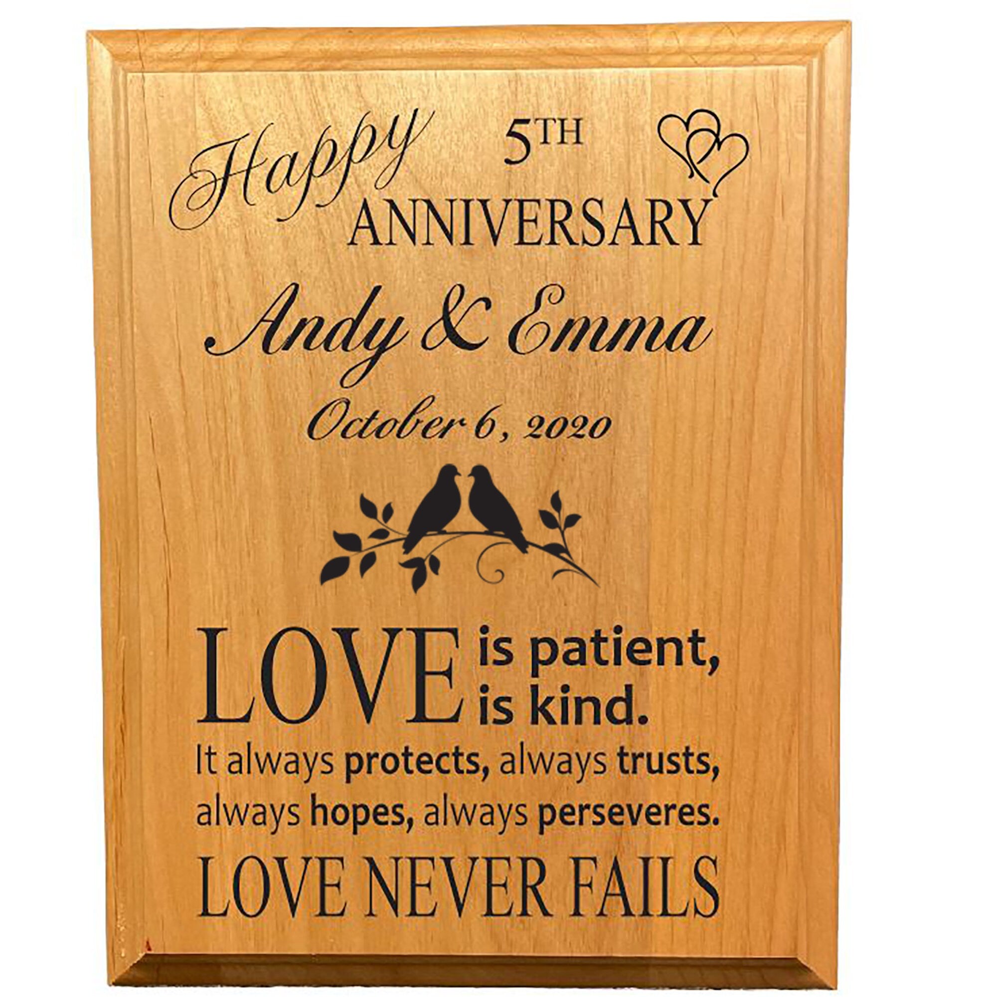 Personalized Wooden Marriage Anniversary Gift | Customizable Laser Engraved Red Alder Wood Plaque Wedding Gift | Custom Valentine's Day Gift