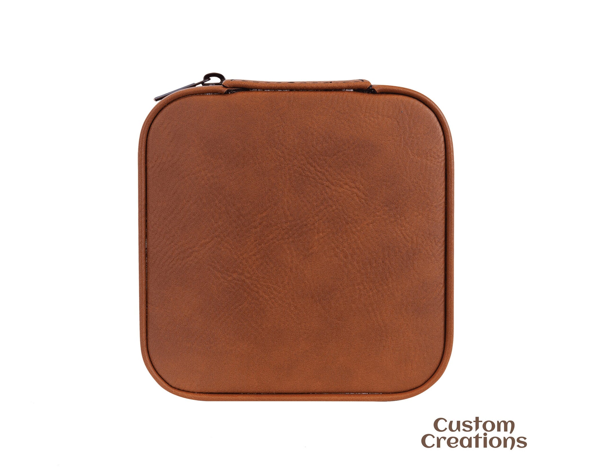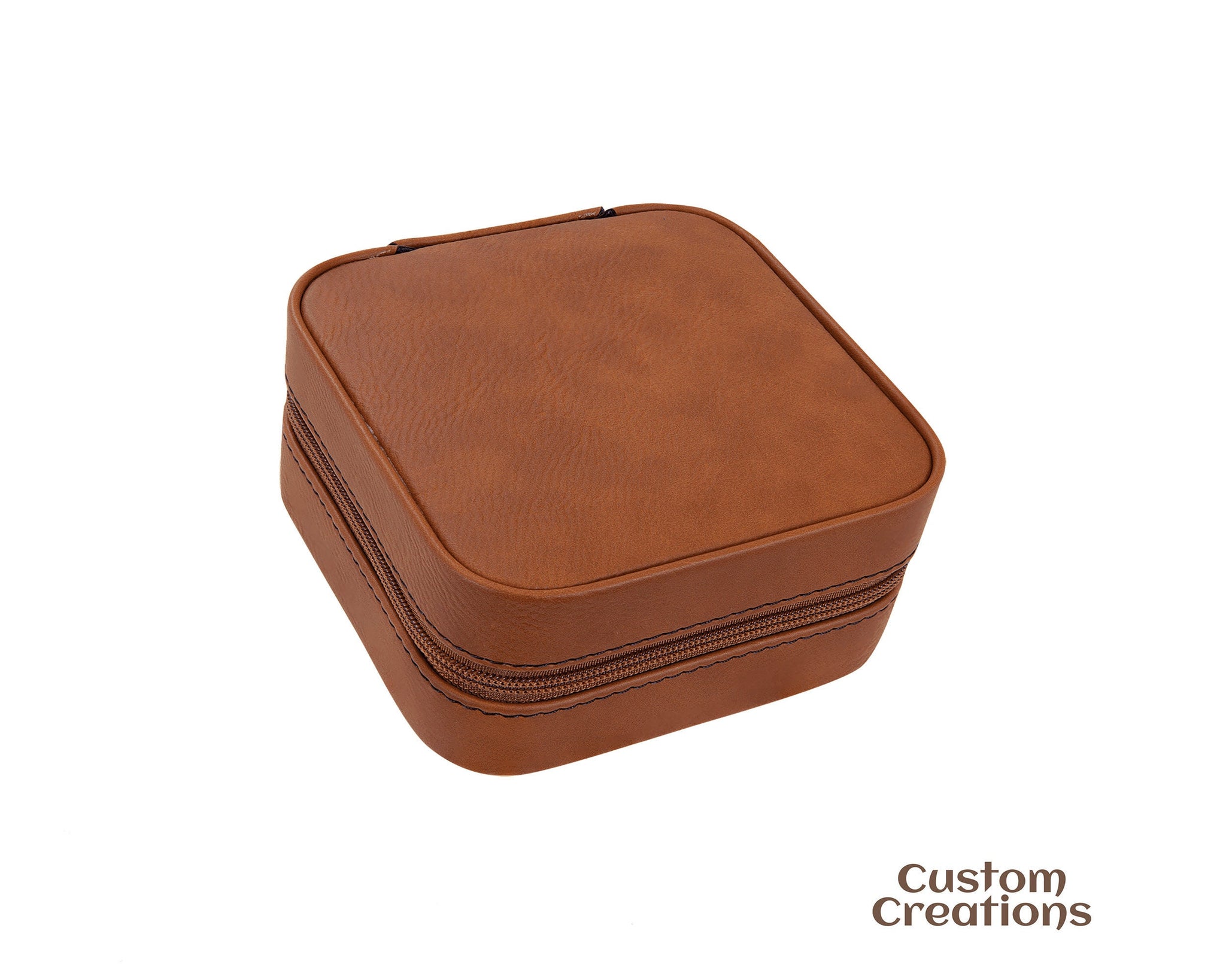 Travel Jewelry Box | Personalized Custom Laserable Vegan Leather 4" x 4" Zippered Jewelry Case | Rawhide Jewelry Stuffer for Bridesmaid