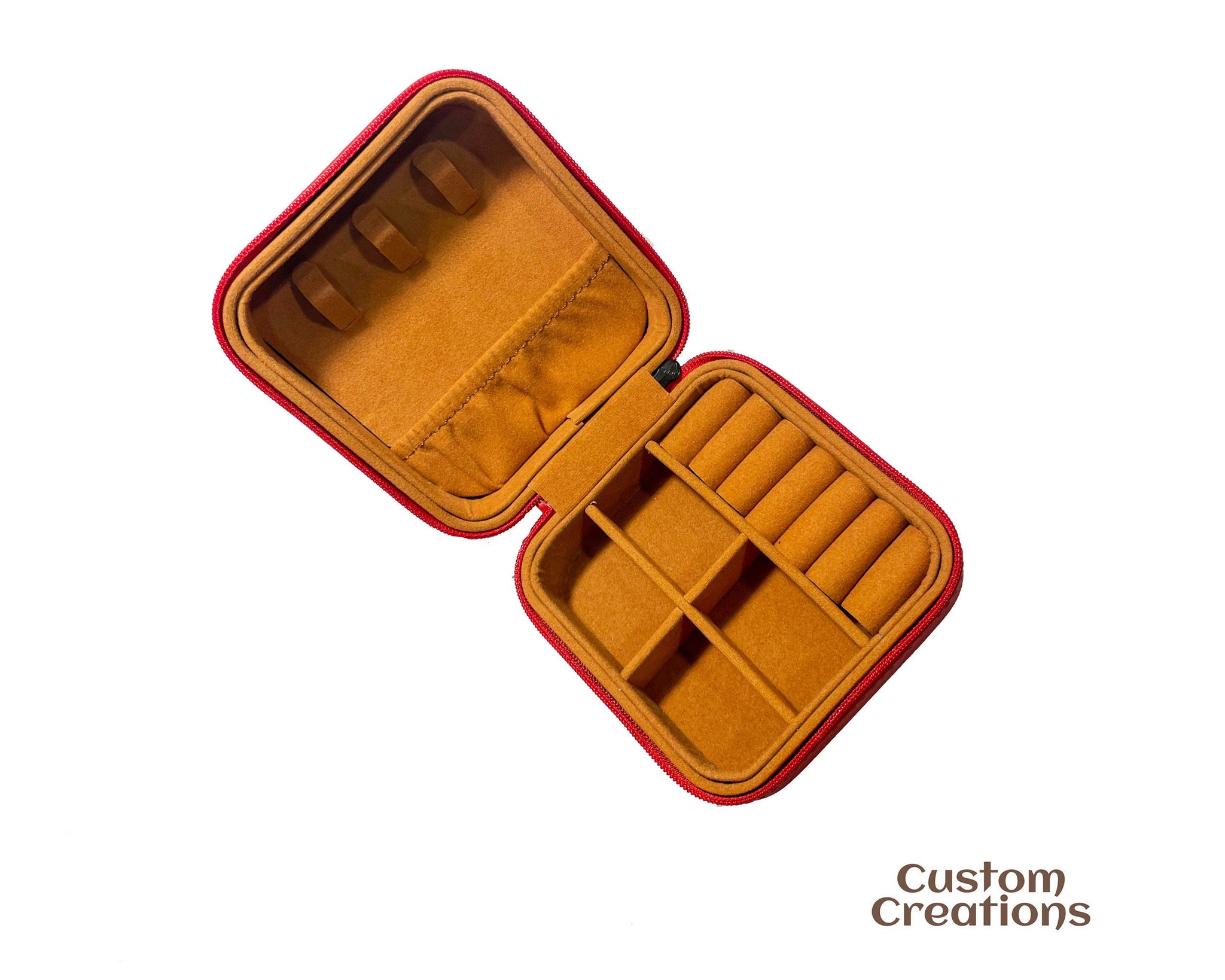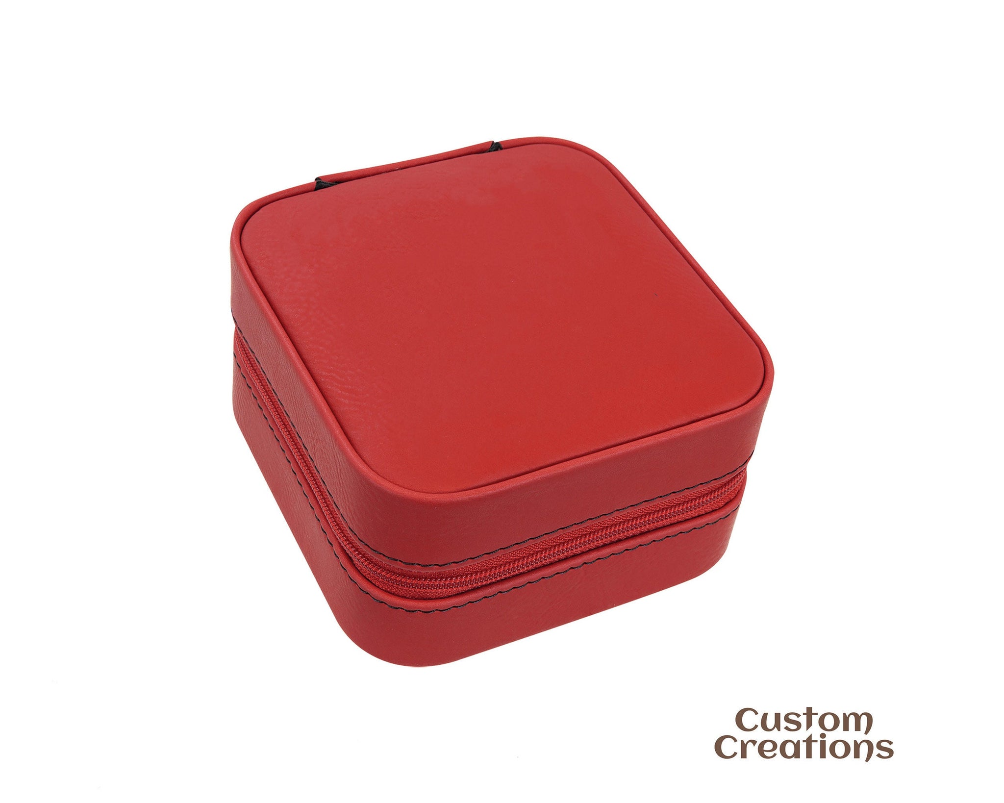 Travel Jewelry Box | Personalized Custom Laserable Vegan Leather 4" x 4" Zippered Jewelry Case | Red Color Jewelry Stuffer for Bridesmaid